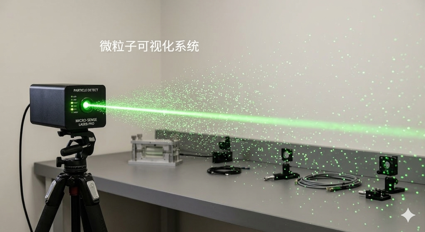 本系统是一套专为高洁净度环境设计的高灵敏度微粒污染物可视化追踪系统。它突破了传统成像技术的局限,通过高性能光源与成像算法的有机结合,实现了洁净空间内低至 0.1um悬浮颗粒物的实时、动态、目视化监测。本系统旨在为环境技术工程师提供直观的污染源排查工具,将污染控制战略(Contamination Control Strategy)从单纯的数值监测提升至基于视觉溯源的精准治理。